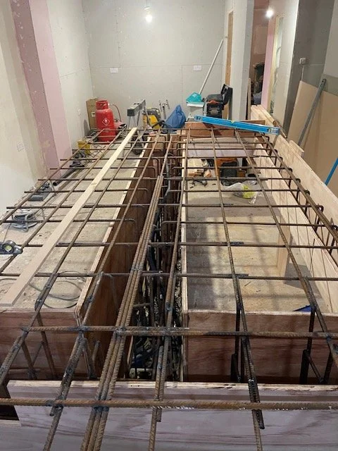 The proposal also includes a new access to a new light well in the basement at the front with a new lobby leading to the playroom at the front of the basement. Access to the basement is also gained by new stairs leading off a mezzanine on the ground floor accessed from the music study, off the living room at the front of the ground floor. Access to the ground floor is up steps that lead to a new hallway that is enclosed with two doors leading to the living room at the front.