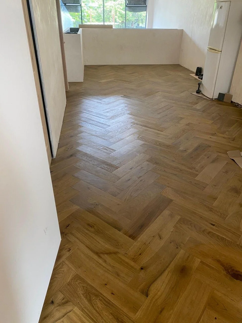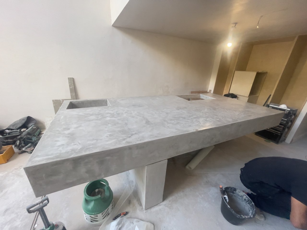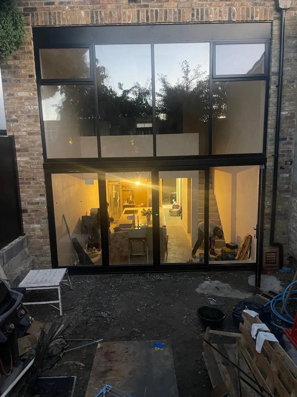The aluminium frames of the glass panels on the rear will be painted grey and of a thinner section than usual, and will include the fames of the doors, which will sit in this aluminium frame.