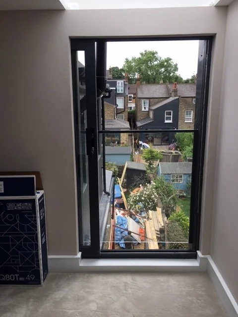 The proposal was to build a loft conversion to accompany an extension-creating a new master bedroom with walk-in wardrobe over the main part of the house – and to build a bedroom and bathroom over the outrigger at the back. The house is a semi-detached Victorian property, with an alley and the loft is on the second floor.Skylights feature throughout the landing and rear and front of the lnew loft space.